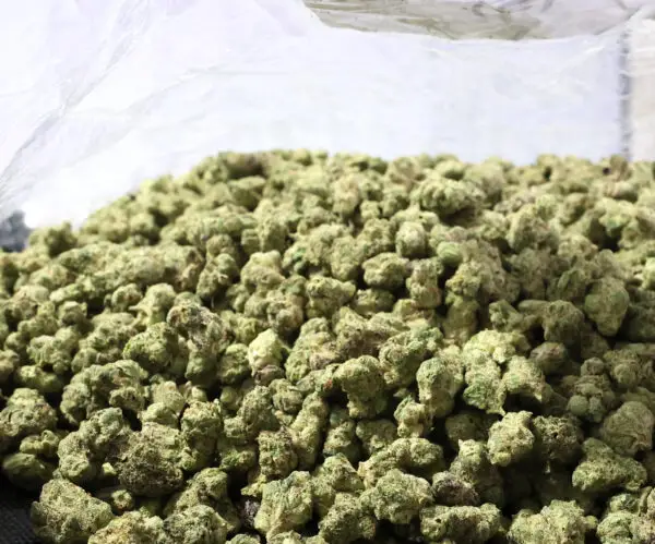 Frosted Smalls with dark green hues, thick orange hairs, and trichomes that cling to your fingertips. Aromatic, potent, and sticky — Exotic all the way.