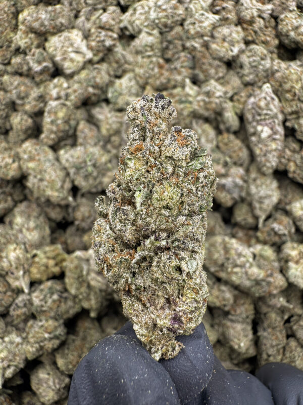 G Force THCa Flower Indica is a terpene-rich cultivar testing at 32.36% THCa, delivering bold diesel gas flavor with earthy spice undertones and relaxing indica effects. Additionally, this Exotic strain provides full-body calm while maintaining a smooth euphoric uplift. Because of its strong terpene profile and reliable potency, G Force THCa Flower Indica is a solid wholesale option for retailers seeking gas-forward indica flower.